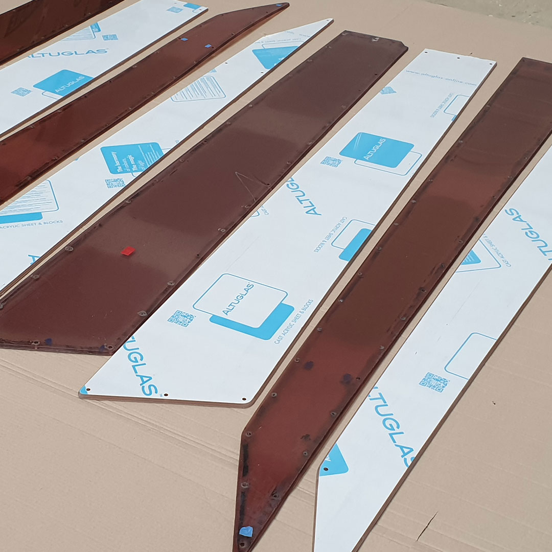 - Découpe tous supports Plexiglass, Altuglas (Hublots de bateau, parois de protection…) Alu, Bois, PVC, Composites…